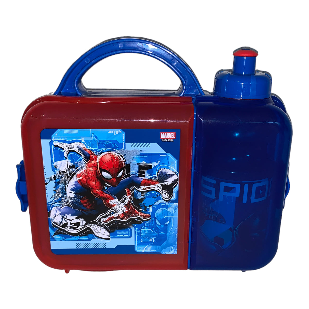 Lonchera con botella de plástico de Spiderman Marvel. Marca Fun Kids.