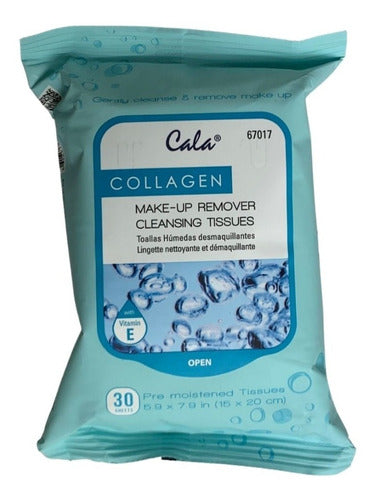 Toallita desmaquillante de colágeno Cala con 6 piezas. Compra de mayoreo y surte tu tienda o negocio, tenemos peluches, perfumes, ventiladores, maquillaje, accesorios, desechables, mochilas, blancos, papelería, juguetes y productos de temporada de mayoreo en demayoreo.com
