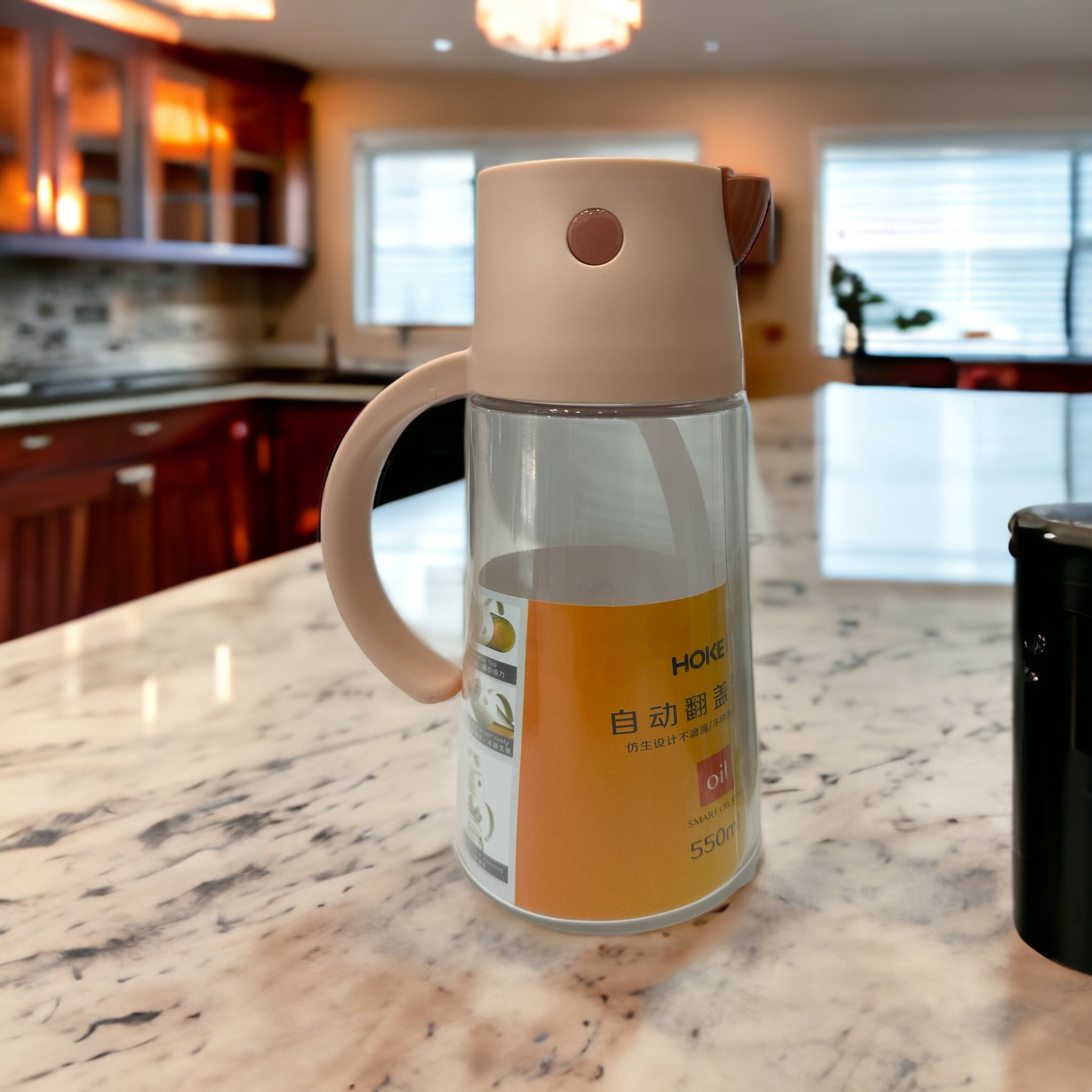 Botella de vidrio para aceite 550 ml en color rosa.