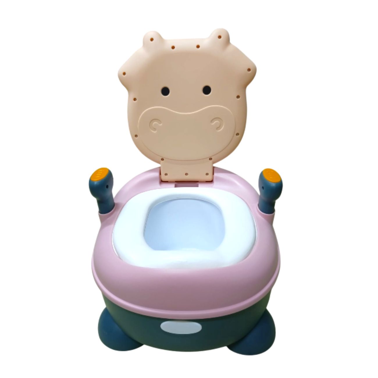 Bañito entrenador para bebés con detalles de vaquita, color rosa. Mide 33 x 26 x 35 cm. Compra de mayoreo y surte tu tienda o negocio, tenemos peluches, perfumes, ventiladores, maquillaje, accesorios, desechables, mochilas, blancos, papelería, juguetes y productos de temporada de mayoreo en demayoreo.com.