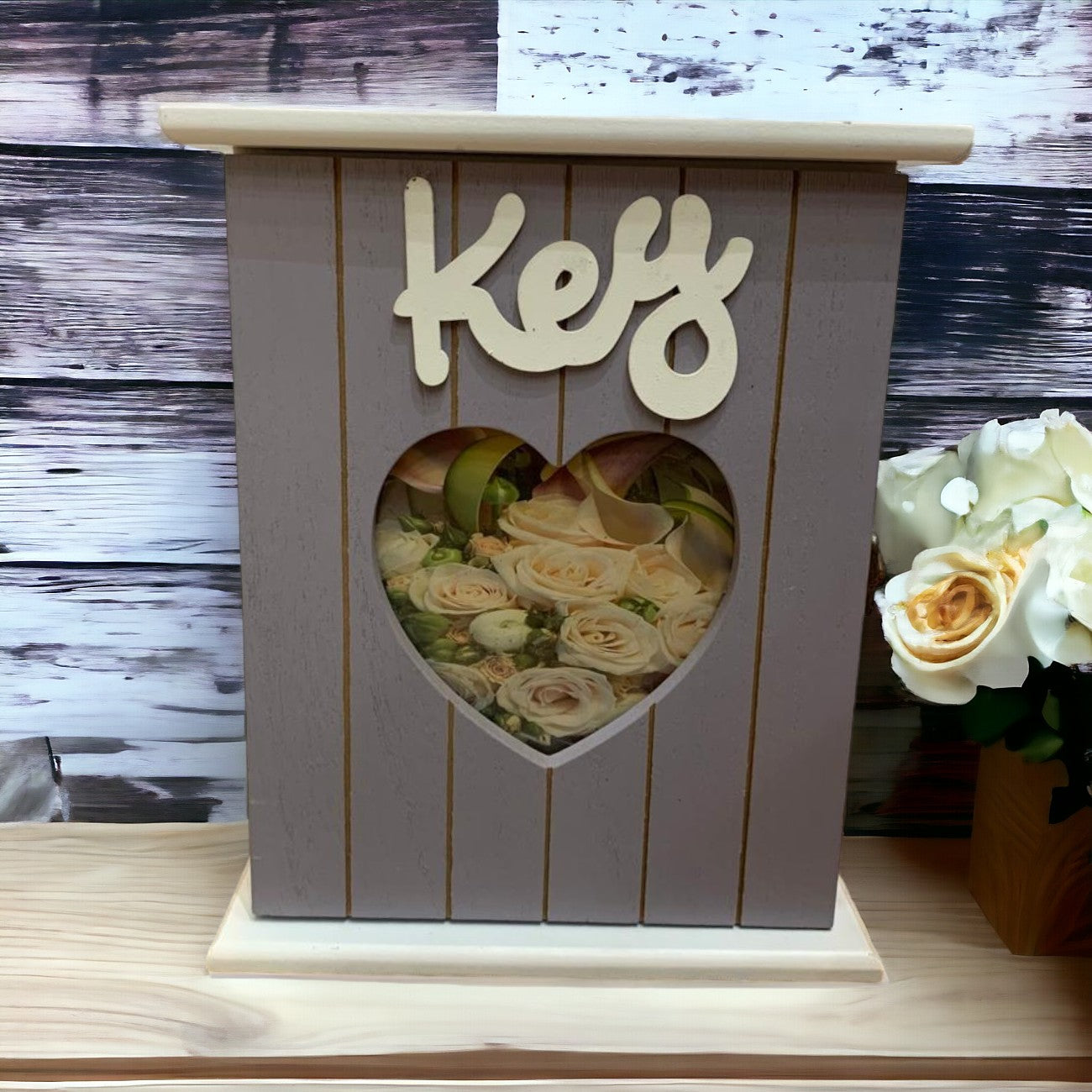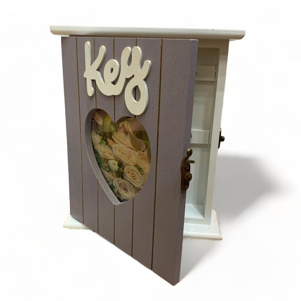 Caja portallaves de madera color lila con 6 ganchos 25x21cm. Compra de mayoreo y surte tu tienda o negocio, tenemos peluches, perfumes, ventiladores, maquillaje, accesorios, desechables, mochilas, blancos, papelería, juguetes y productos de temporada de mayoreo en demayoreo.com.