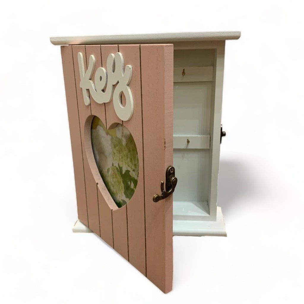 Caja portallaves de madera con 6 ganchos de color rosa 25x21cm. Compra de mayoreo y surte tu tienda o negocio, tenemos peluches, perfumes, ventiladores, maquillaje, accesorios, desechables, mochilas, blancos, papelería, juguetes y productos de temporada de mayoreo en demayoreo.com.