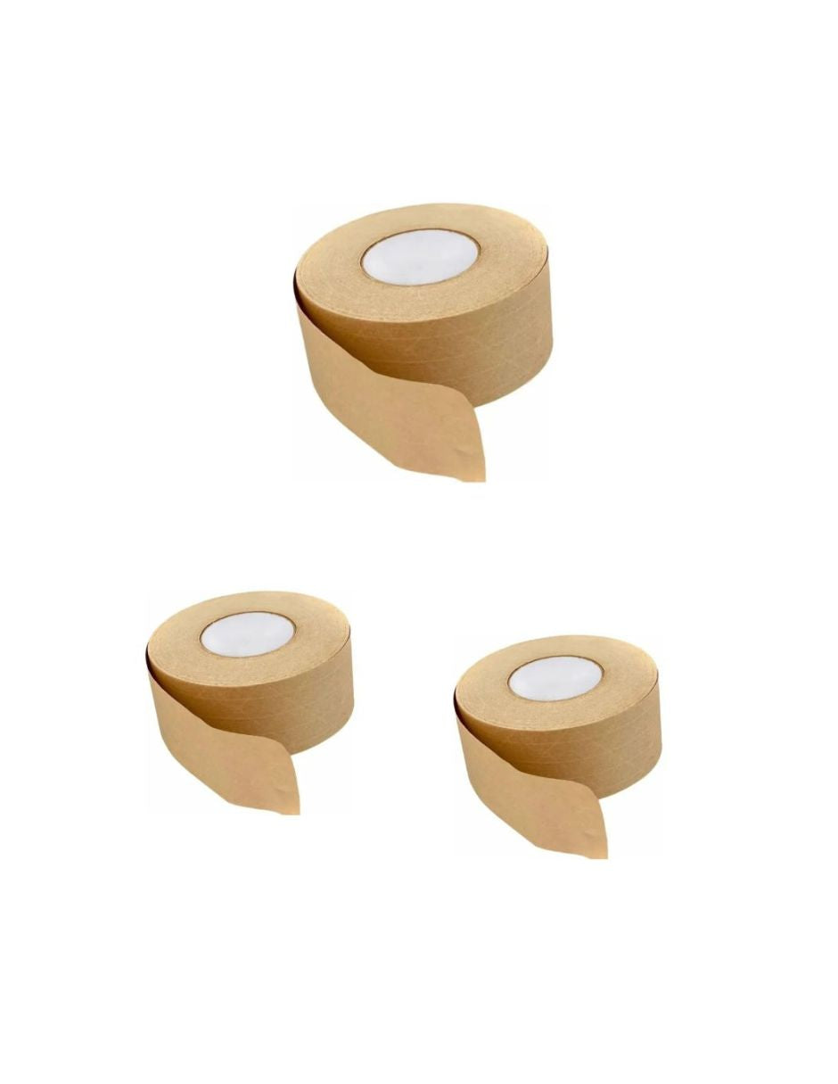 Cinta Gorila Kraft con refuerzo de Hilos de Fibra de Vidrio. Se activa con agua. El color es natural.