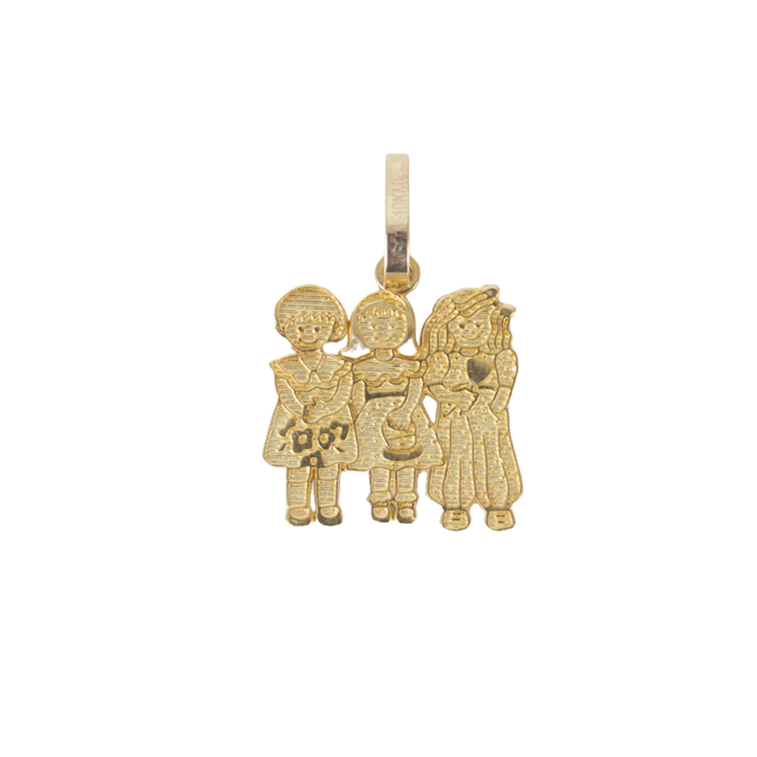 Dije en oro amarillo de 10k con tres niñas 1.2 gramos. Compra de mayoreo y surte tu tienda o negocio, tenemos peluches, perfumes, ventiladores, maquillaje, accesorios, desechables, mochilas, blancos, papelería, juguetes y productos de temporada de mayoreo en demayoreo.com.
