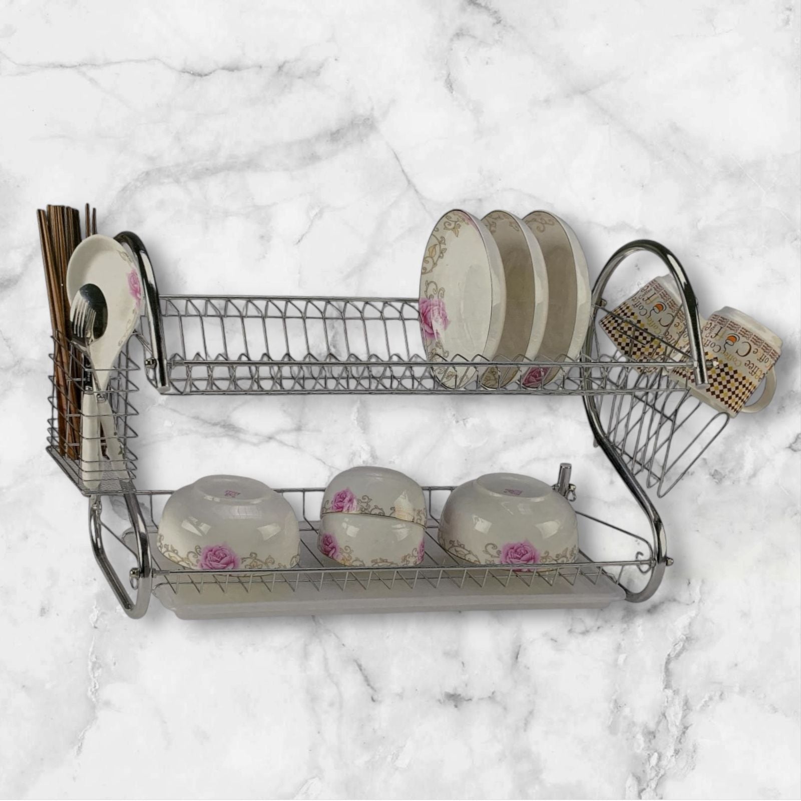Escurridor doble nivel color plateado para la cocina. Compra de mayoreo y surte tu tienda o negocio, tenemos peluches, perfumes, ventiladores, maquillaje, accesorios, desechables, mochilas, blancos, papelería, juguetes y productos de temporada de mayoreo en demayoreo.com.