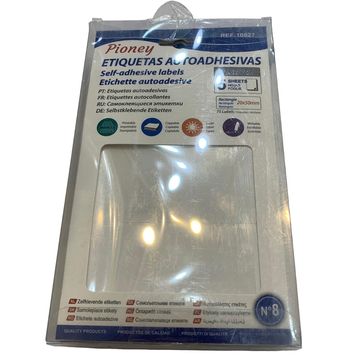 Caja de Etiquetas Adhesivas con 5 Planillas Etiquetas de 20 x 50 mm. Compra de mayoreo y surte tu tienda o negocio, tenemos peluches, perfumes, ventiladores, maquillaje, accesorios, desechables, mochilas, blancos, papelería, juguetes y productos de temporada de mayoreo en demayoreo.com.
