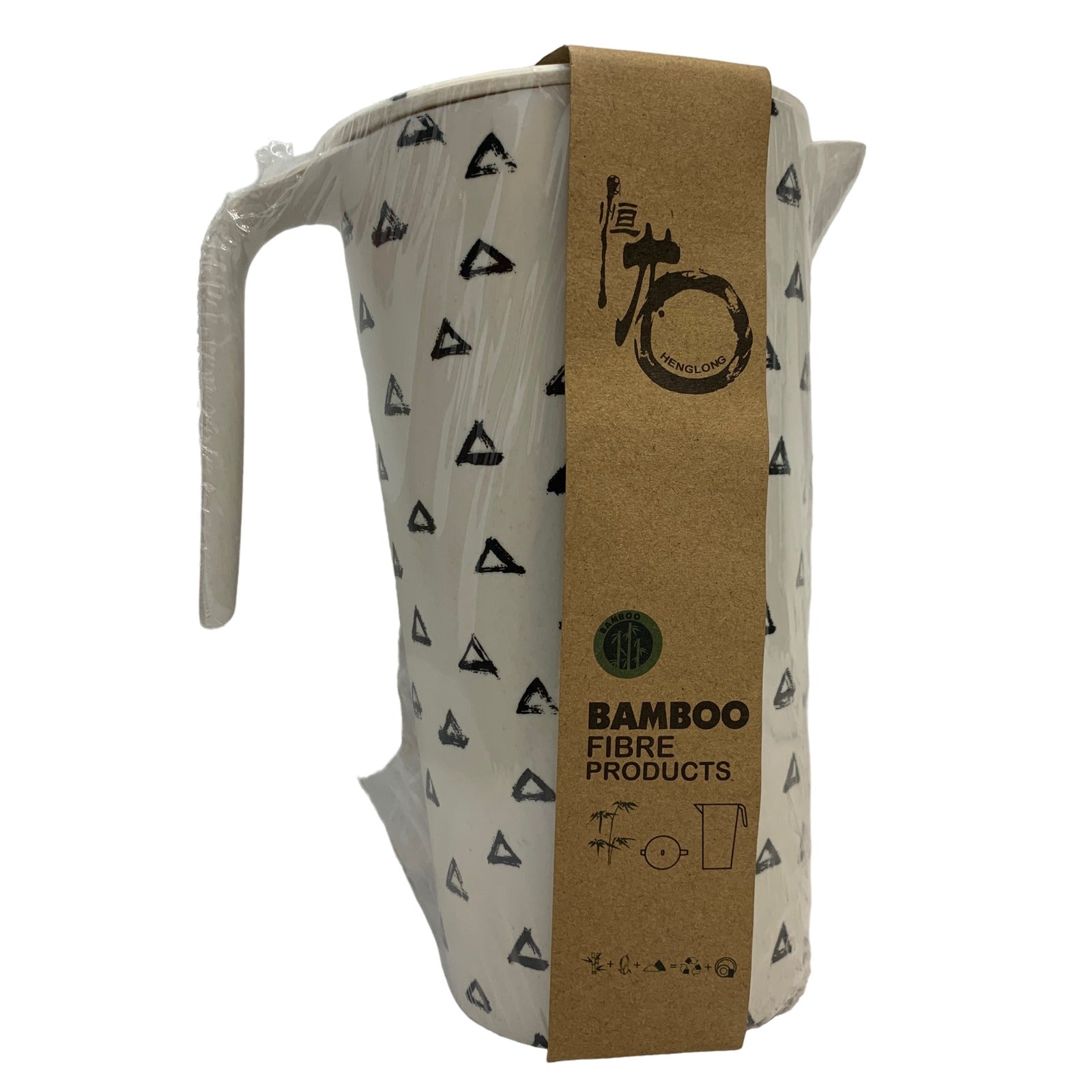 Jarra de Bambú Blanco con Triángulos Negros de 1Lt. Compra de mayoreo y surte tu tienda o negocio, tenemos peluches, perfumes, ventiladores, maquillaje, accesorios, desechables, mochilas, blancos, papelería, juguetes y productos de temporada de mayoreo en demayoreo.com.