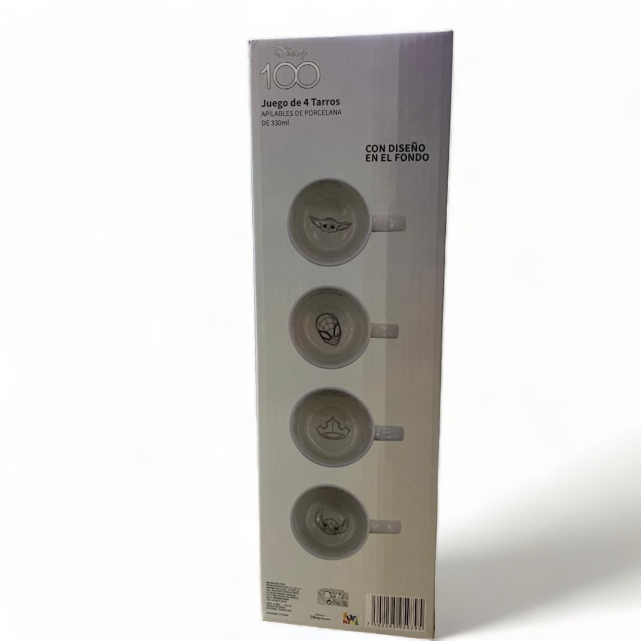 Juego de 4 tarros apilables de porcelana de 100 años Disney con capacidad de 330ml. Compra de mayoreo y surte tu tienda o negocio, tenemos peluches, perfumes, ventiladores, maquillaje, accesorios, desechables, mochilas, blancos, papelería, juguetes y productos de temporada de mayoreo en demayoreo.com.