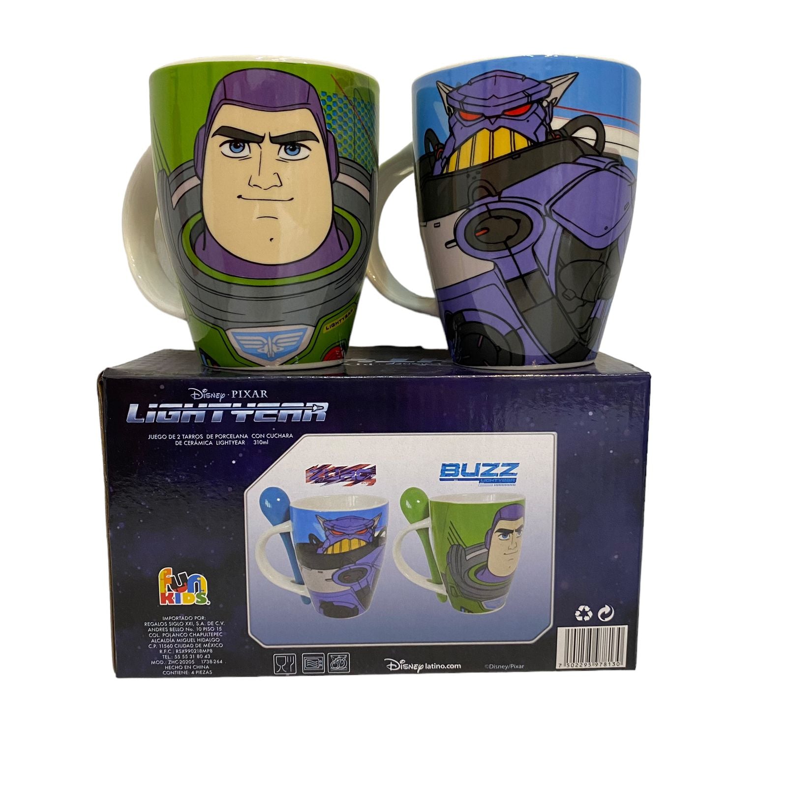Juego de 2 tazas con cuchara Buzz. Compra de mayoreo y surte tu tienda o negocio, tenemos peluches, perfumes, ventiladores, maquillaje, accesorios, desechables, mochilas, blancos, papelería, juguetes y productos de temporada de mayoreo en demayoreo.com.