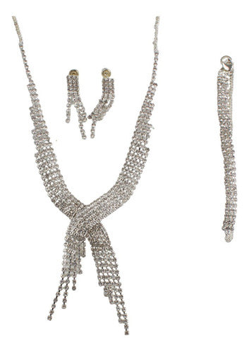 Juego de aretes y collar plateado de piedras de acero. Compra de mayoreo y surte tu tienda o negocio, tenemos peluches, perfumes, ventiladores, maquillaje, accesorios, desechables, mochilas, blancos, papelería, juguetes y productos de temporada de mayoreo en demayoreo.com.