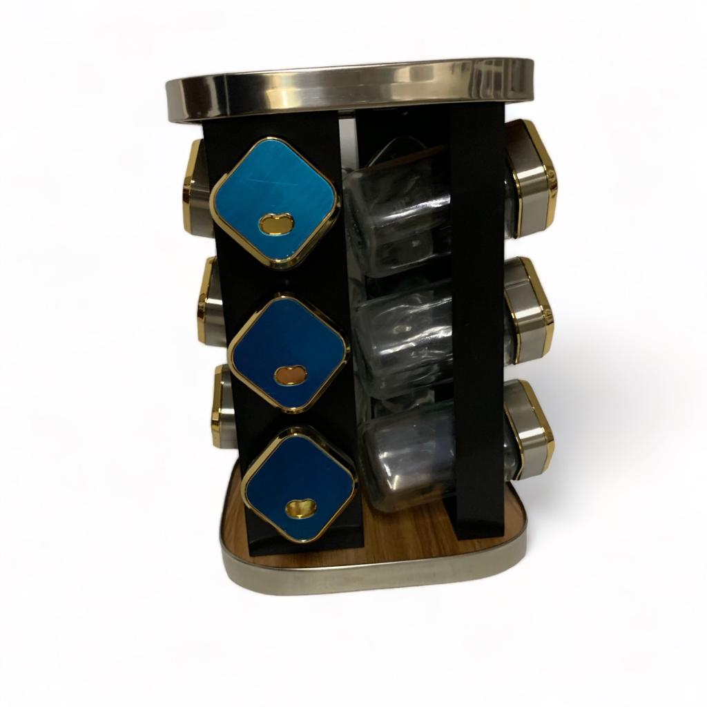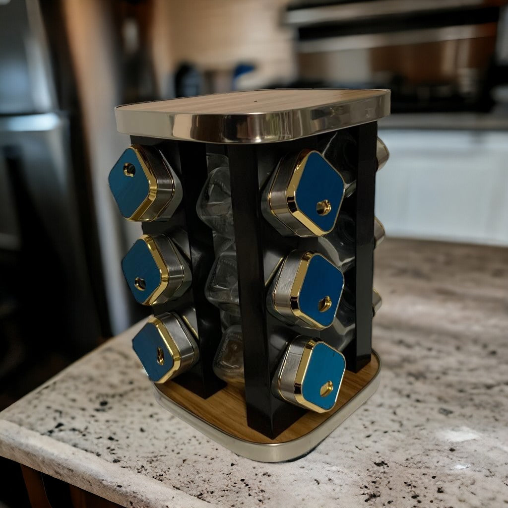 Juego de 12 especieros de vidrio, con tapa de acero inoxidable y base giratoria de plástico y madera. Las 3 salidas de condimentos son ajustables. Compra de mayoreo y surte tu tienda o negocio, tenemos peluches, perfumes, ventiladores, maquillaje, accesorios, desechables, mochilas, blancos, papelería, juguetes y productos de temporada de mayoreo en demayoreo.com.
