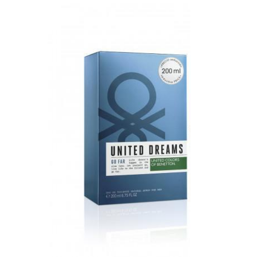 United Dreams Go Far de Benetton es una fragancia de la familia olfativa Aromática Acuática para Hombres. Las Notas de Salida son cidra, lima (limón verde) y notas marinas; las Notas de Corazón son lavanda, flor de loto azul y cardamomo. Compra de mayoreo y surte tu tienda o negocio, tenemos peluches, perfumes, ventiladores, lenceria, ropa, maquillaje, accesorios, desechables, mochilas, blancos, papeleria, juguetes y productos de temporada de mayoreo en demayoreo.com