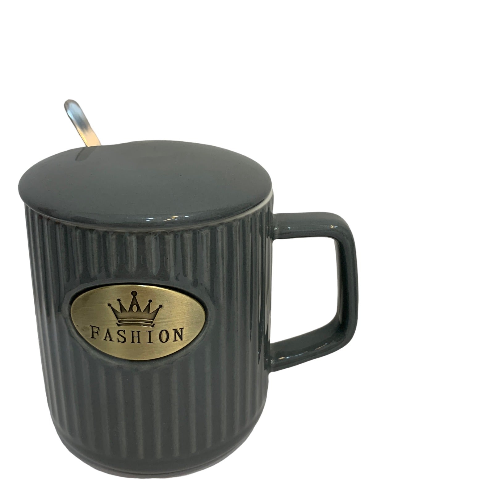 Taza de Ceramica con Tapa y Cuchara Color Gris Compra de mayoreo y surte tu tienda o negocio, tenemos peluches, perfumes, ventiladores, lenceria, ropa, maquillaje, accesorios, desechables, mochilas, blancos, papeleria, juguetes y productos de temporada de mayoreo en demayoreo.com