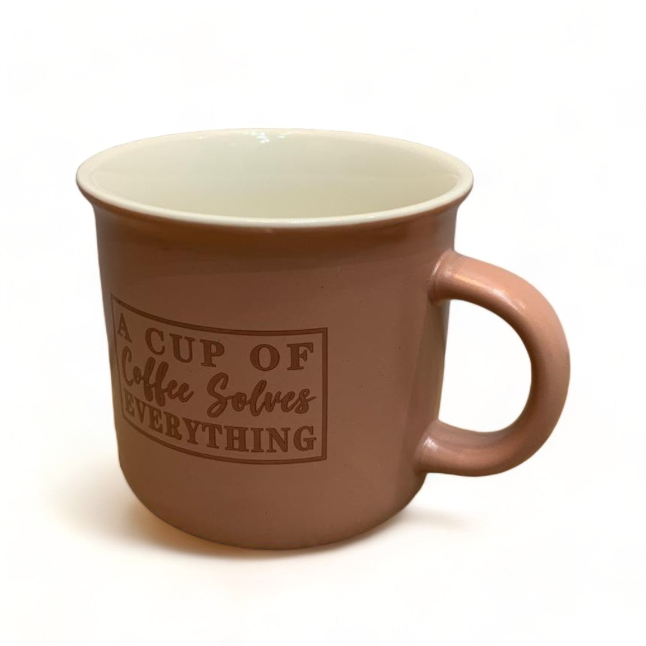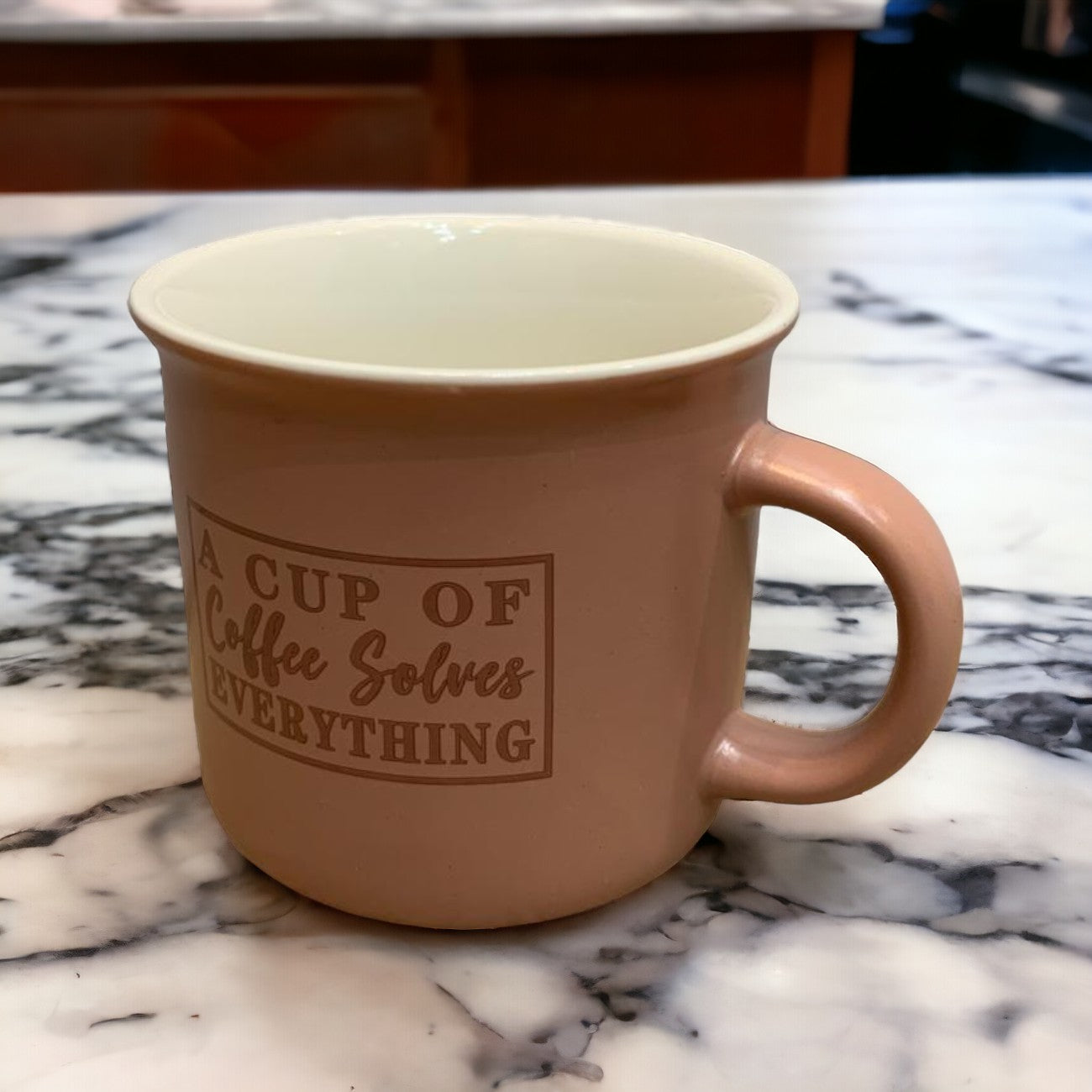 Taza de porcelana coffee solves color rosa palo, con capacidad de 340ml. Compra de mayoreo y surte tu tienda o negocio, tenemos peluches, perfumes, ventiladores, lenceria, ropa, maquillaje, accesorios, desechables, mochilas, blancos, papeleria, juguetes y productos de temporada de mayoreo en demayoreo.com