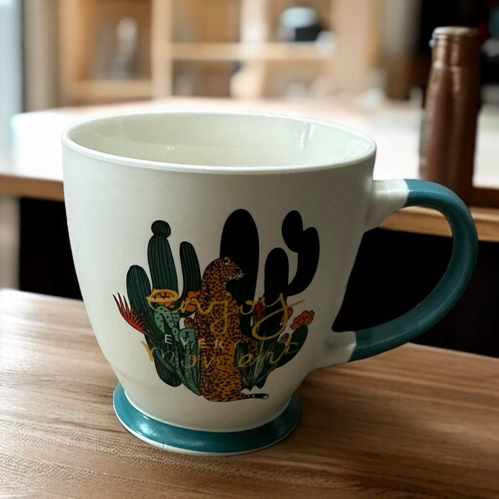 Taza de porcelana de leopardo enjoy con capacidad de 400ml. Compra de mayoreo y surte tu tienda o negocio, tenemos peluches, perfumes, ventiladores, lenceria, ropa, maquillaje, accesorios, desechables, mochilas, blancos, papeleria, juguetes y productos de temporada de mayoreo en demayoreo.com