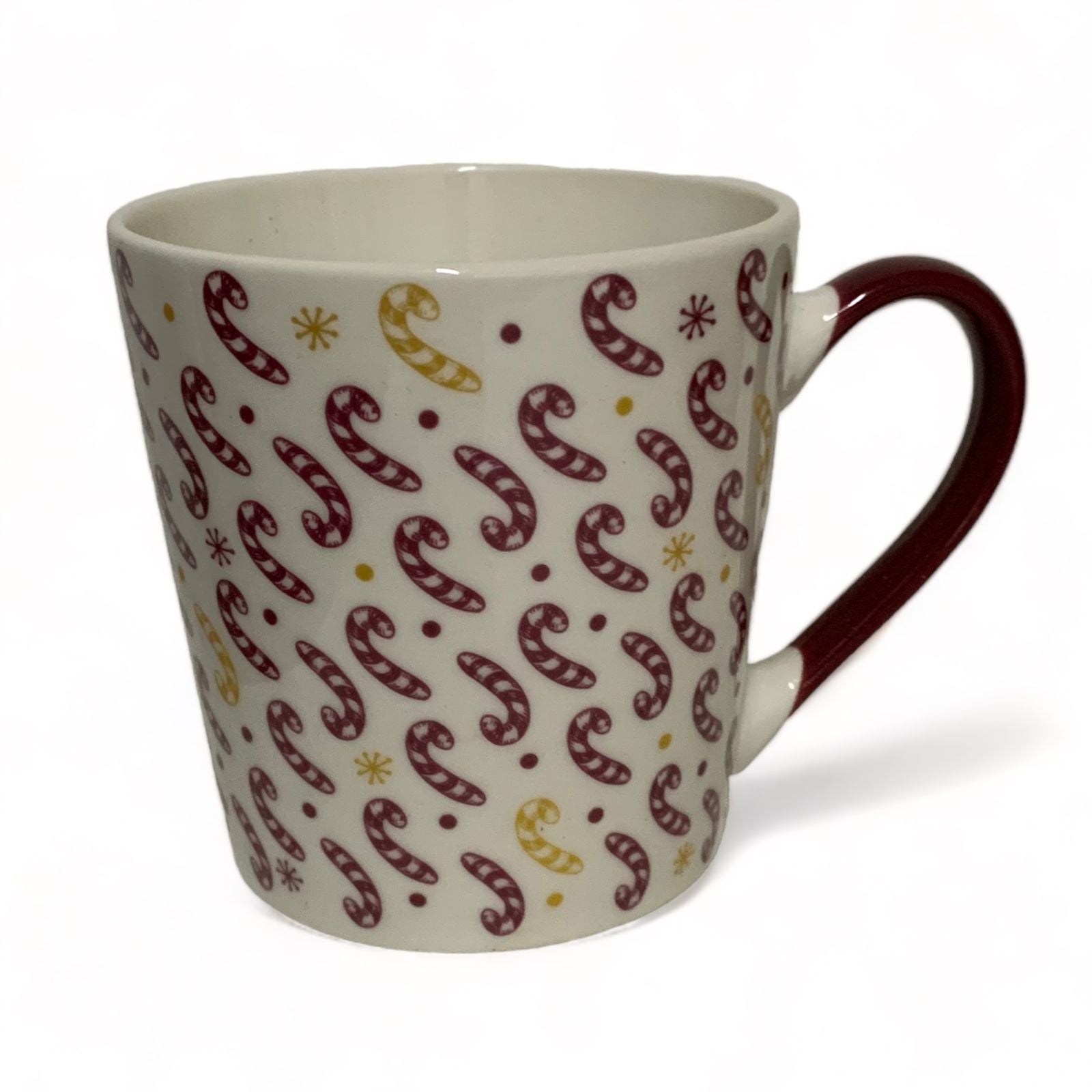 Taza de porcelana color blanco con bastones de caramelo con capacidad de 380ml. Compra de mayoreo y surte tu tienda o negocio, tenemos peluches, perfumes, ventiladores, lenceria, ropa, maquillaje, accesorios, desechables, mochilas, blancos, papeleria, juguetes y productos de temporada de mayoreo en demayoreo.com