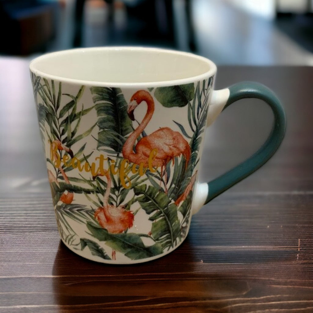 Taza de porcelana flamencos color blanco con letras doradas, beautiful, con capacidad de 380ml. Compra de mayoreo y surte tu tienda o negocio, tenemos peluches, perfumes, ventiladores, lenceria, ropa, maquillaje, accesorios, desechables, mochilas, blancos, papeleria, juguetes y productos de temporada de mayoreo en demayoreo.com