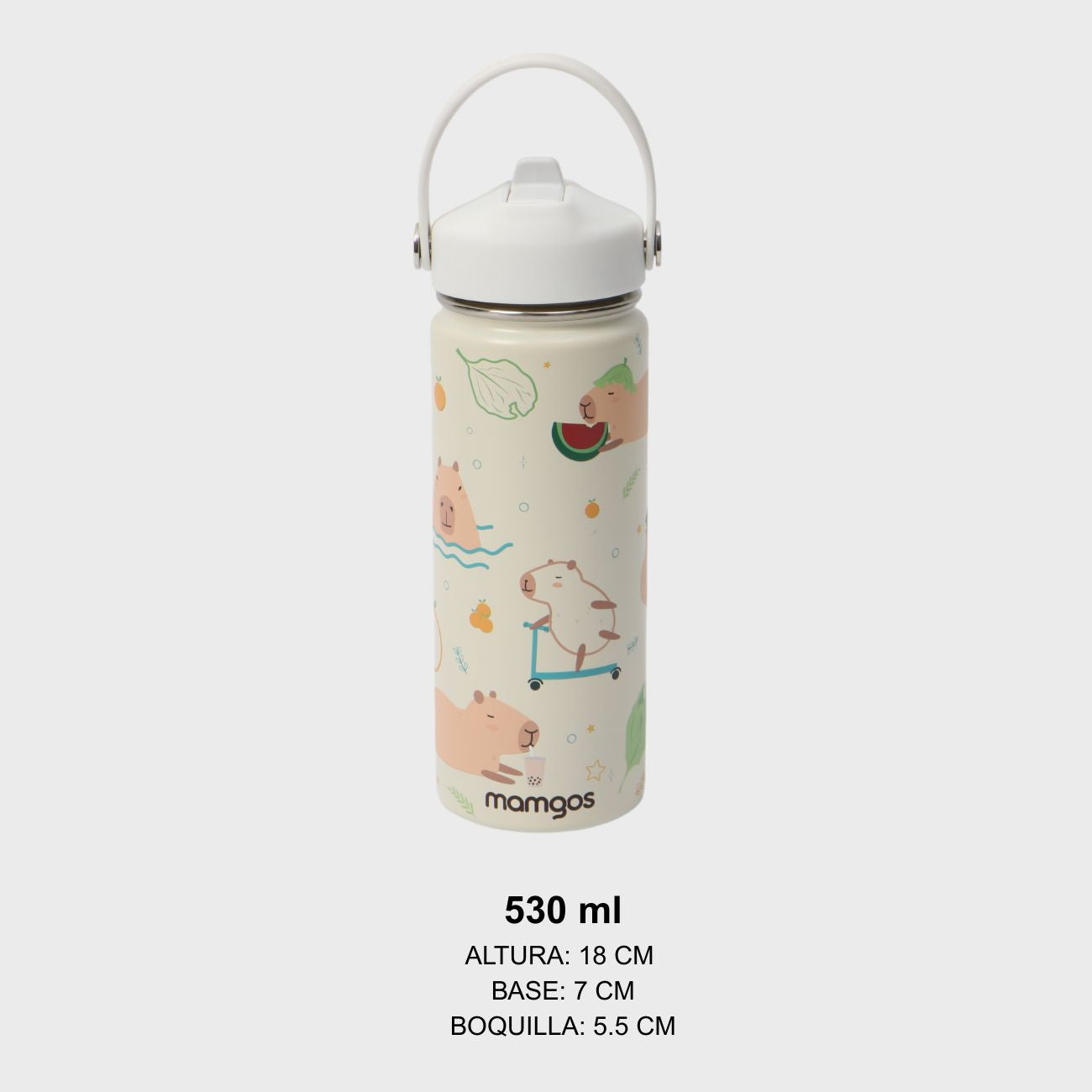 Termo con popote Mamgos Capibara Acero inoxidable 530 ml