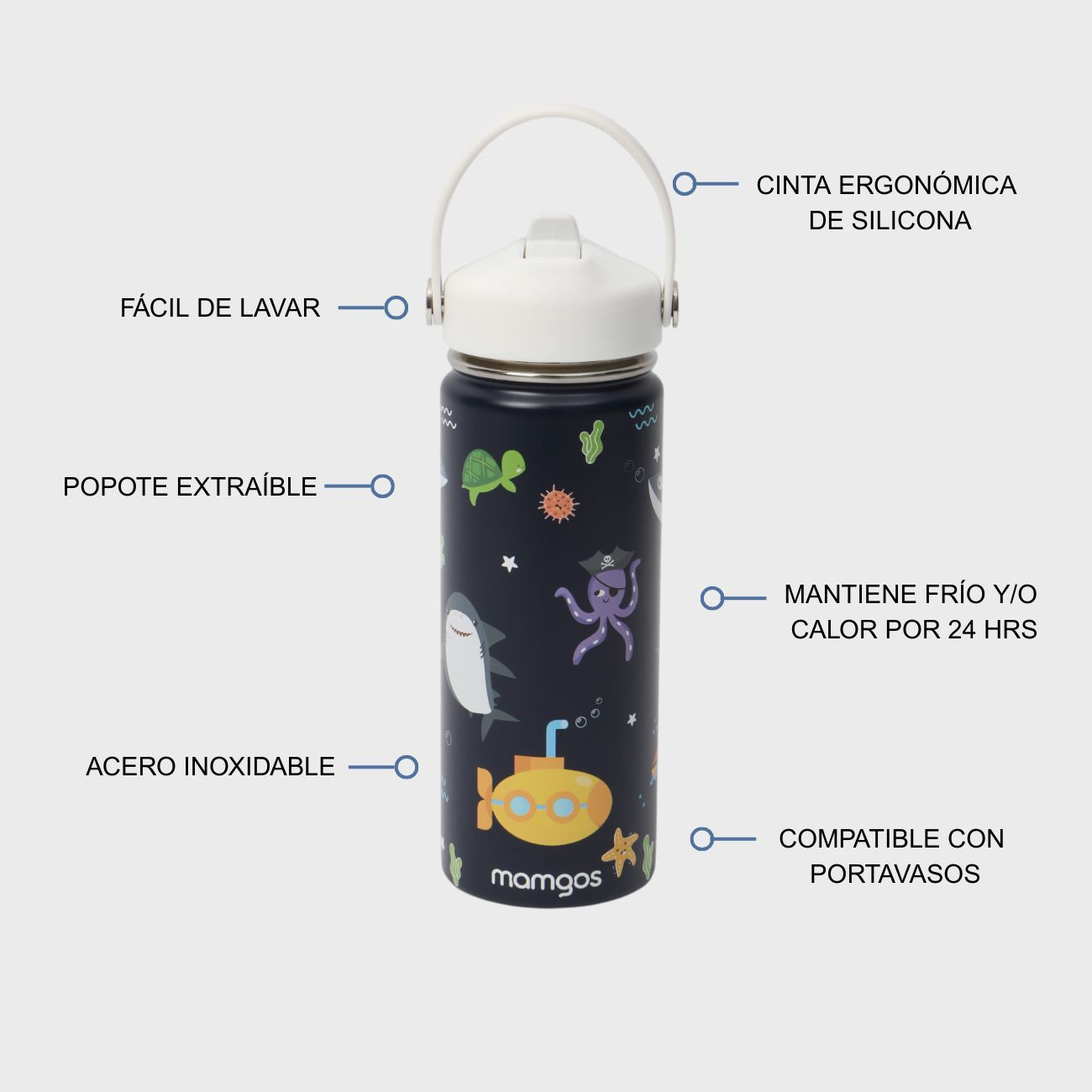 Termo con popote Mamgos Océano 2.0 Acero inoxidable 530 ml