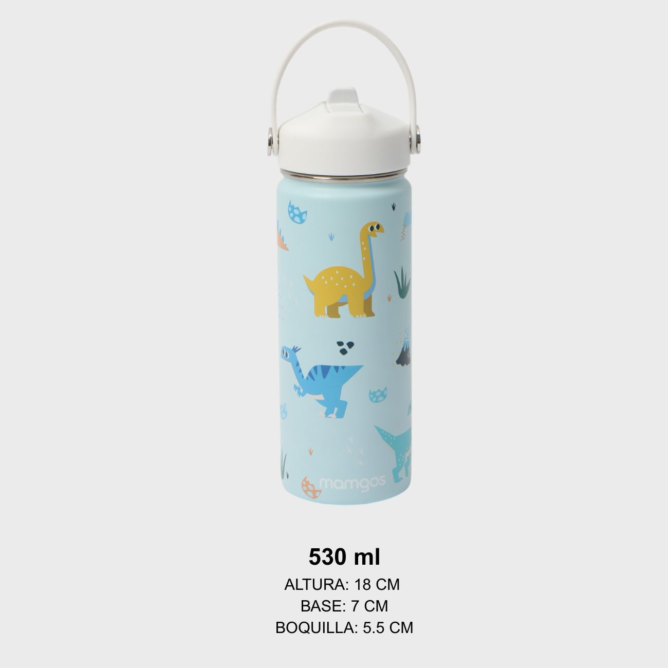 Termo Mamgos con ilustraciones de Dinosaurios color azul. Mantiene el frío y el calor por 12 horas, tiene capacidad de 530 ml. Compra de mayoreo y surte tu tienda o negocio, tenemos peluches, perfumes, ventiladores, maquillaje, accesorios, desechables, mochilas, blancos, papelería, juguetes y productos de temporada de mayoreo en demayoreo.com.