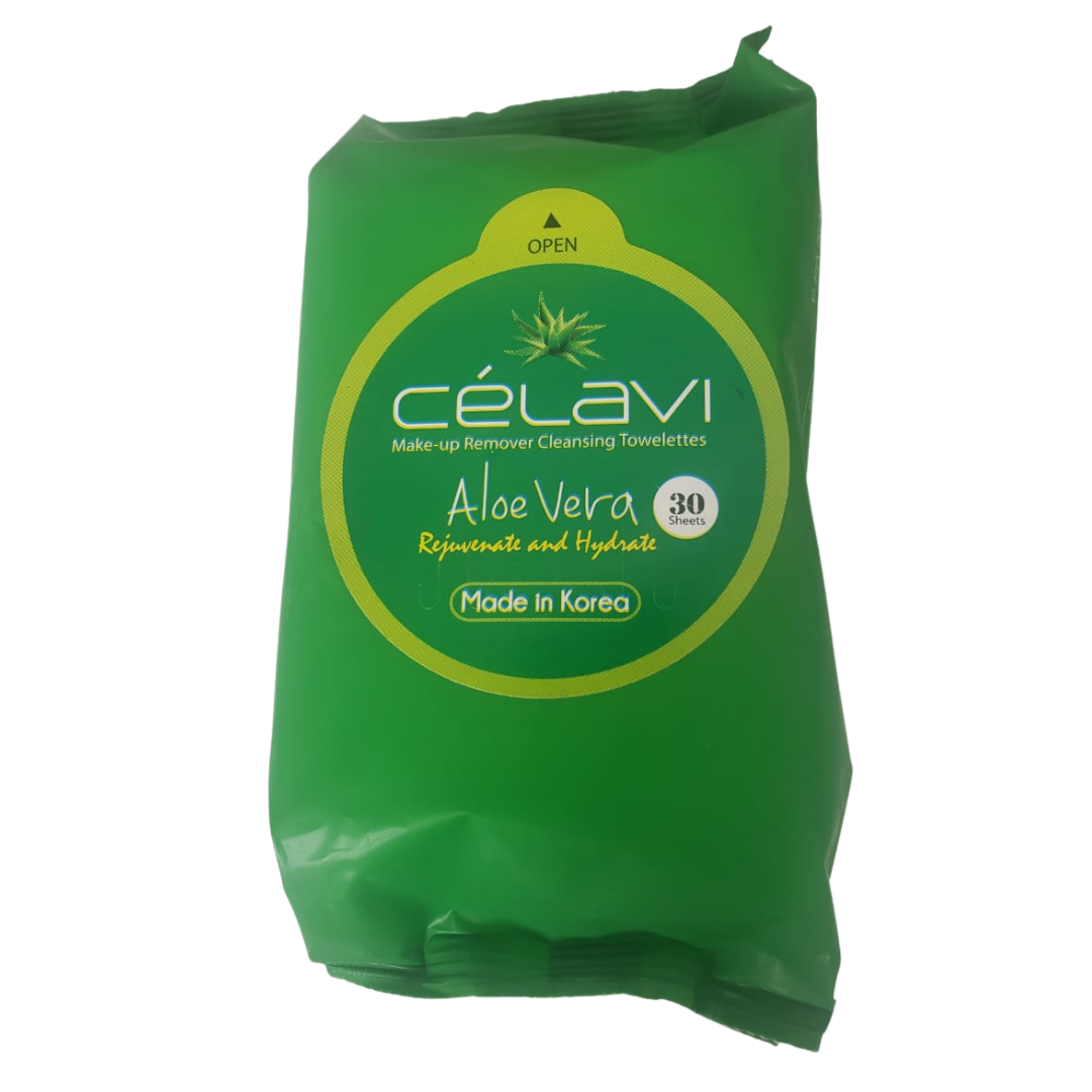 Toallitas desmaquillantes Célavi 30 pzas. - Aloe Vera Compra de mayoreo y surte tu tienda o negocio, tenemos peluches, perfumes, ventiladores, lenceria, ropa, maquillaje, accesorios, desechables, mochilas, blancos, papeleria, juguetes y productos de temporada de mayoreo en demayoreo.com