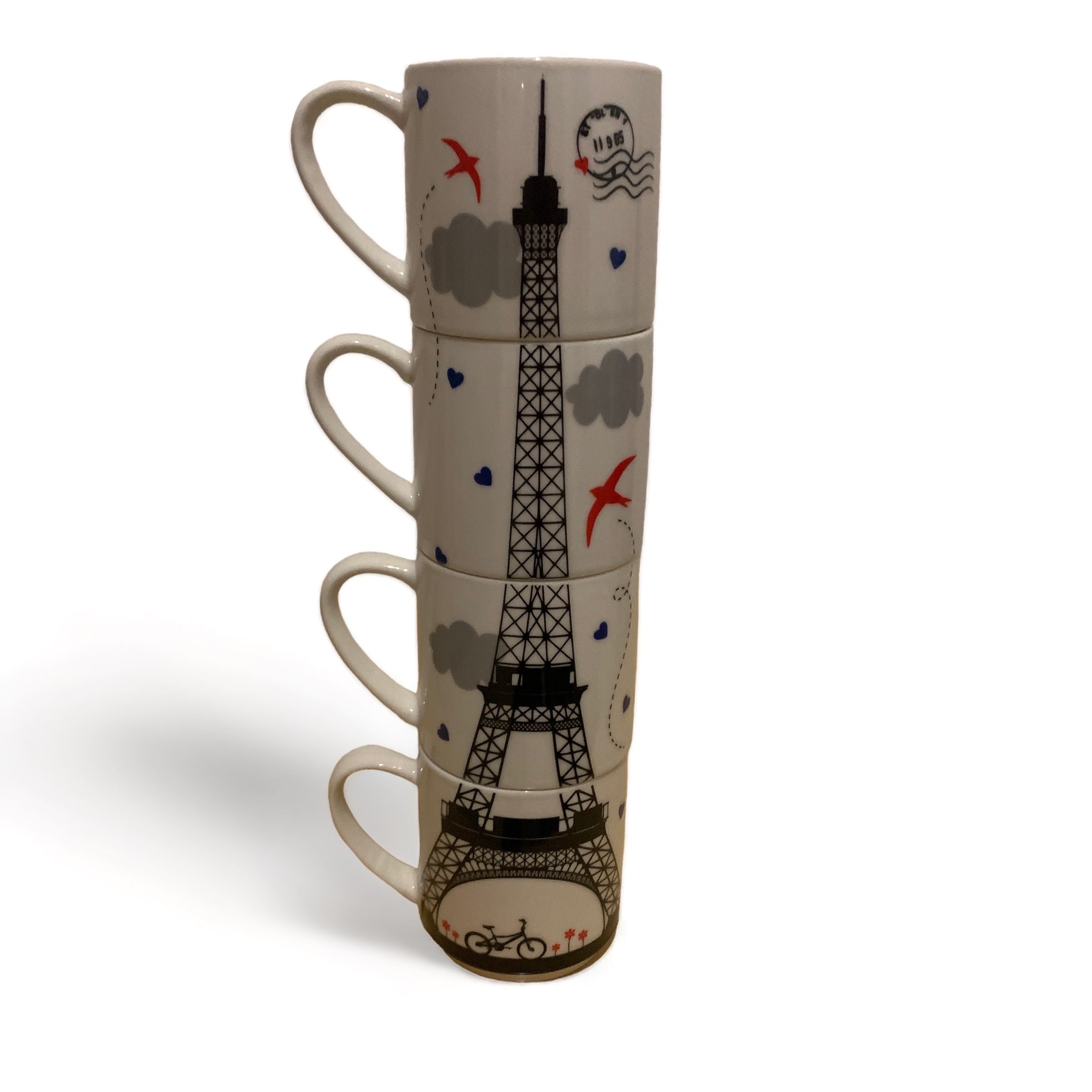 Torre de 4 tazas de la torre Eiffel de porcelana de 330 ml.